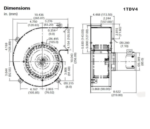 1TDV4 Drawing Published March 5, 2021 at 520 × 448 in Dayton Replacement Blower -1TDV4, 7090-2379, 7064-1678, 4C943, 4YJ33 ← Previous