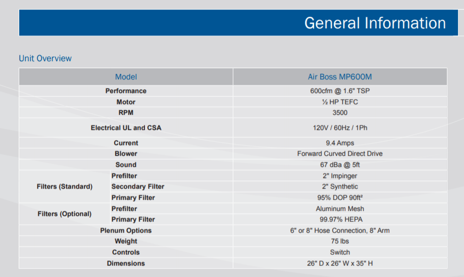 Air Boss MP600 Data Published August 20, 2019 at 919 × 548 in Trion – Air Boss® MP600M Mist Collector ← Previous Next →